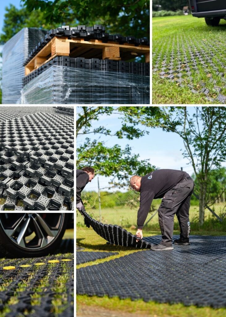 L’installation est rapide et modulaire : couper – poser – clipser – compacter. Un parking peut être prêt à l’usage le jour même.